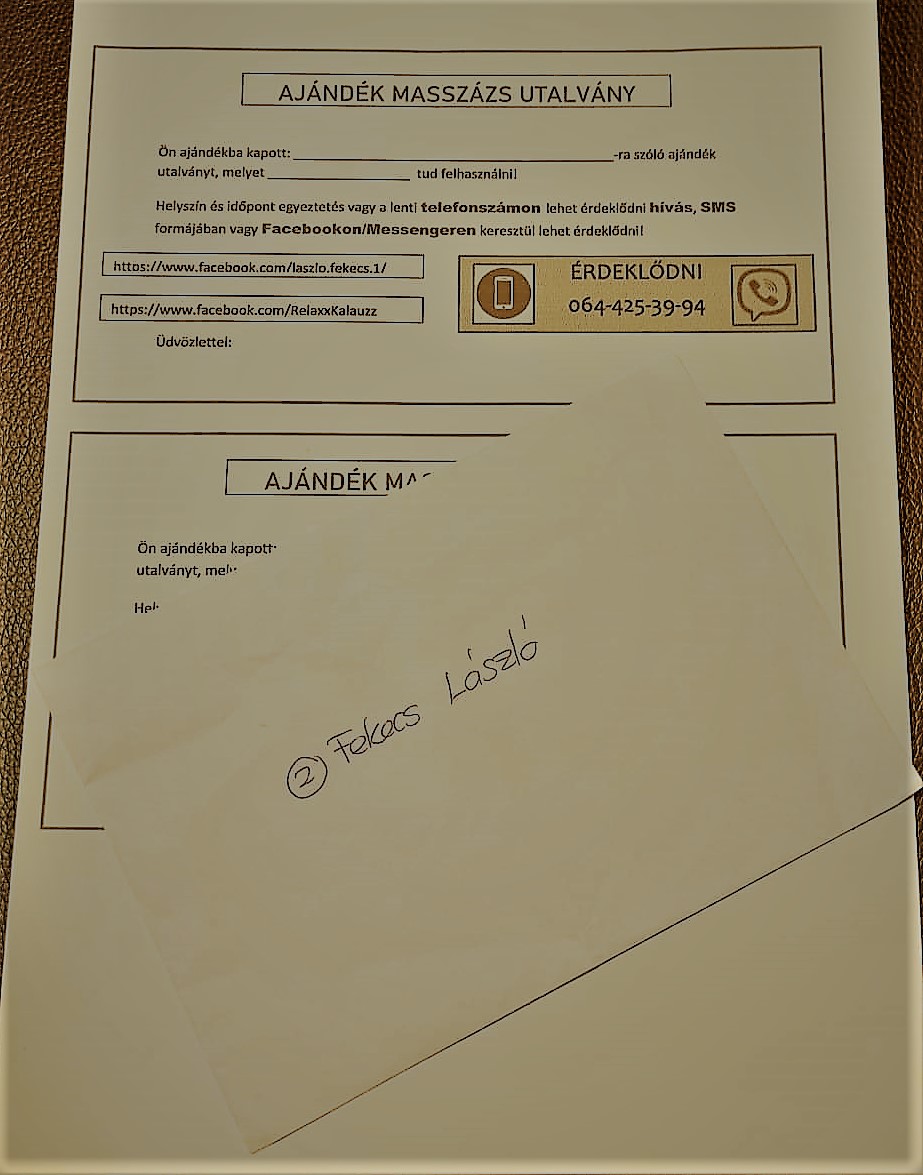AJÁNDÉK MASSZÁZS UTALVÁNY